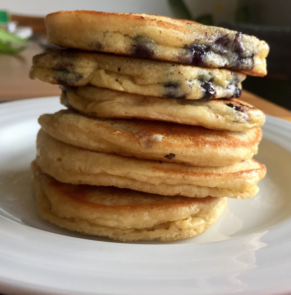 Warm a griddle over medium-low heat. When warm, mist with cooking spray or brush with ghee. Drop pancakes by scant 1/4-cupfuls, spreading evenly. Cook until undersides are golden, 2 to 3 minutes, then flip and cook until cooked through and golden on both sides, 1 to 2 minutes longer. Serve warm with maple syrup.